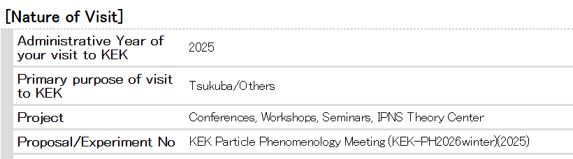 - Click "2. Identify the purpose of your visit to KEK/J-PARC" just below.
